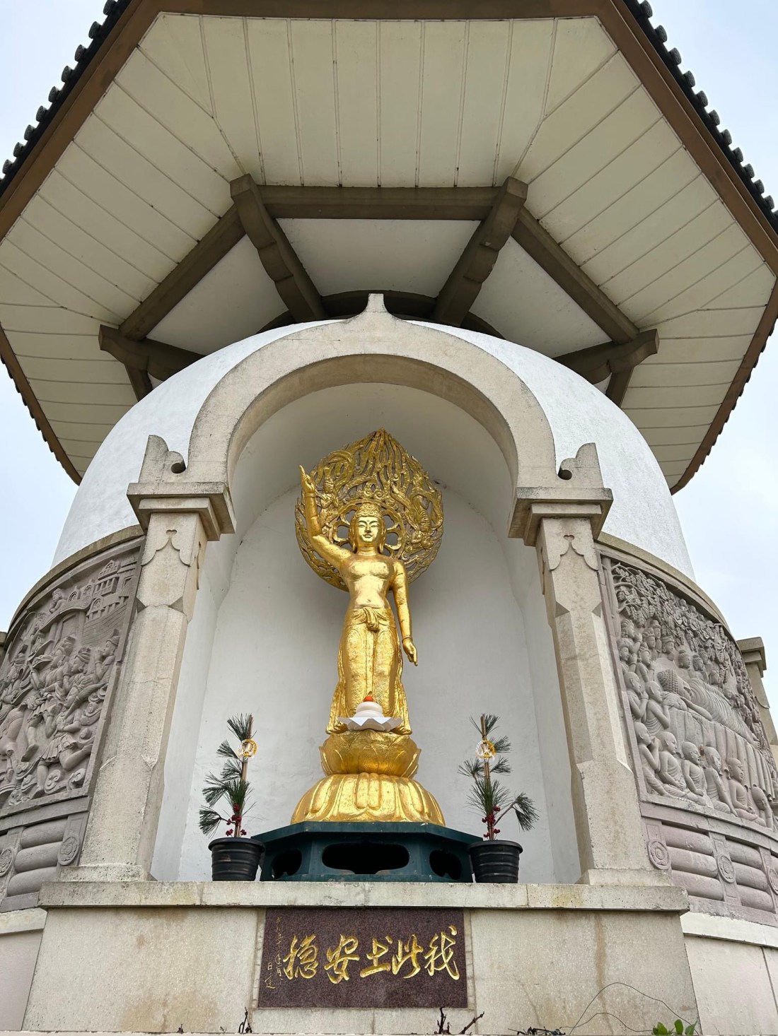The Honmon Kaidan Daigohonzon (本門戒壇の大御本尊), or the “Great Gohonzon of the Essential Platform”, is a Honzon from the Nichiren tradition, carved on a camphor plank that has been lacquered black and the logographs guilded. Its format, with engraved